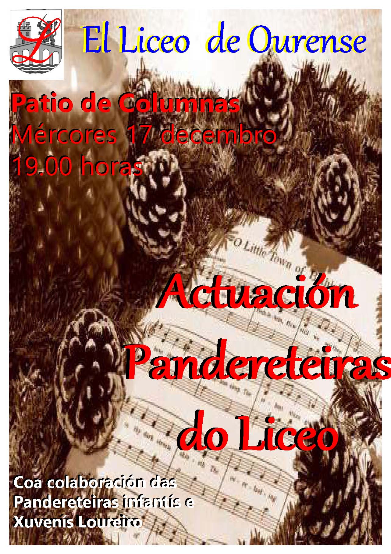 Como xa é habitual as PANDERETEIRAS DO LICEO abren a programación de NADAL na nosa entidade con unha actuación de panxoliñas, unha marabilla de acto, de concerto, de música e de bo facer, nesta ocasión ademáis tiveron a colaboración das dos nenos da Asociación Loureiro. Moitas gracias polo voso traballo sodes un luxo para o Liceo.