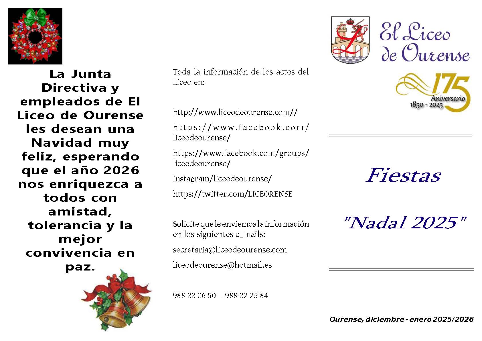 Por favor mandeme un correo a secretaria@liceodeourense.com para tener el correo electronico.
